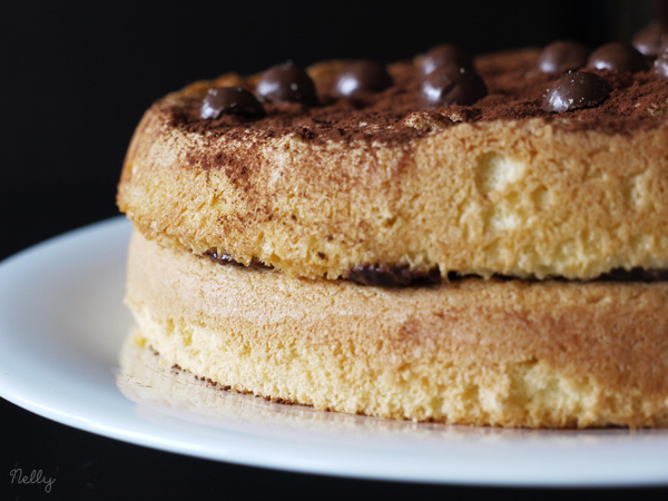 Si vous n’avez pas de nappage, le plus joli, c’est de saupoudrer à l’aide d’un tamis du sucre glace ou du cacao amer sur le dessus du gâteau.
